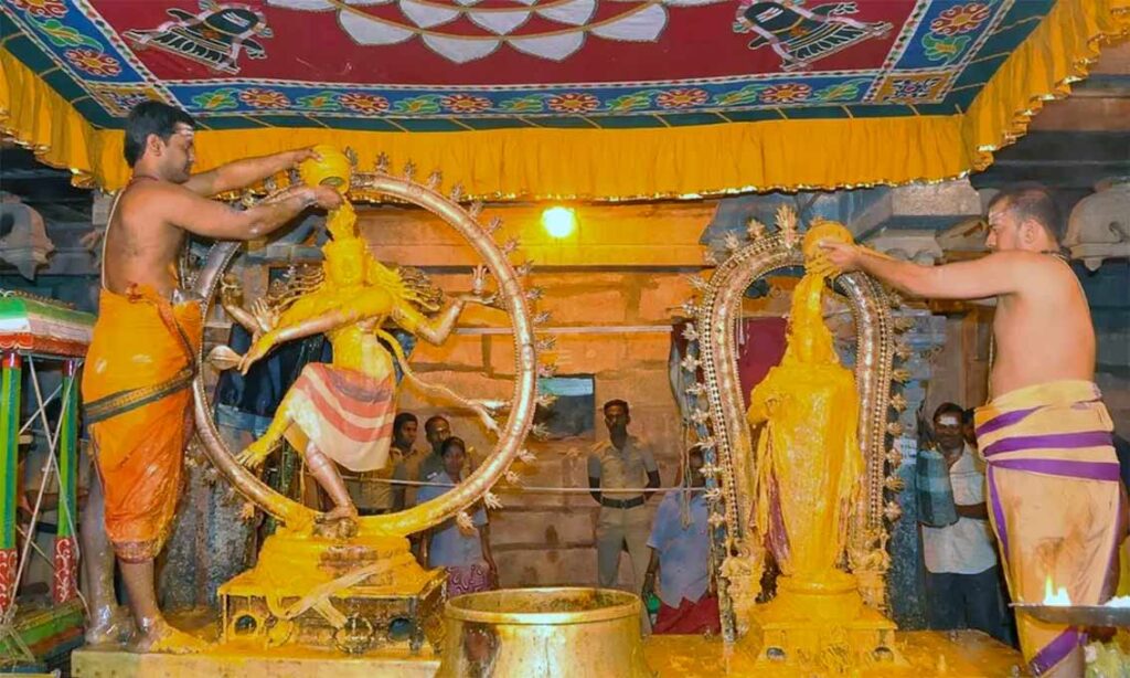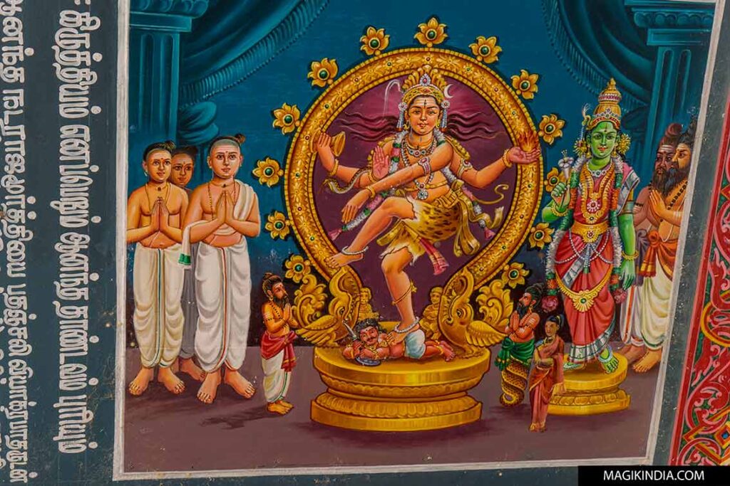 Selon la légende, deux sages, Patanjali (le compilateur du recueil classique des Yoga Sutras) et Vyaghrapada, désiraient ardemment voir la « danse de la félicité » de Shiva dans la forêt de Thaillai, aujourd’hui Chidambaram.