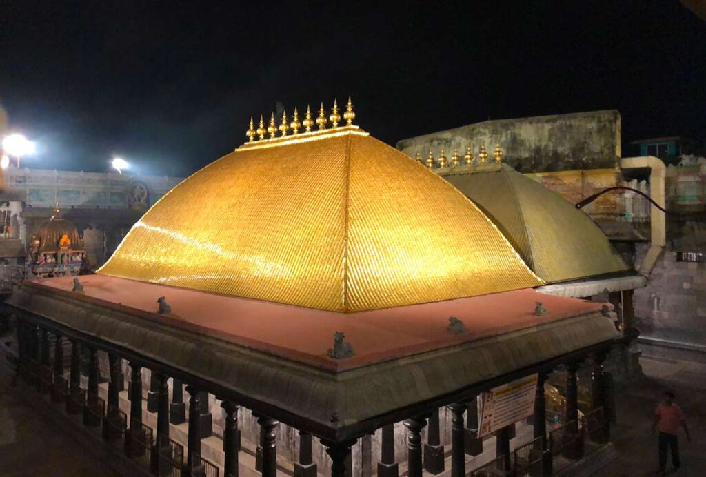 La caractéristique unique du temple de Chidambaram est sa vénération de Shiva sous trois formes distinctes, toutes abritées dans le Chit Sabha, le sanctuaire au toit d’or :