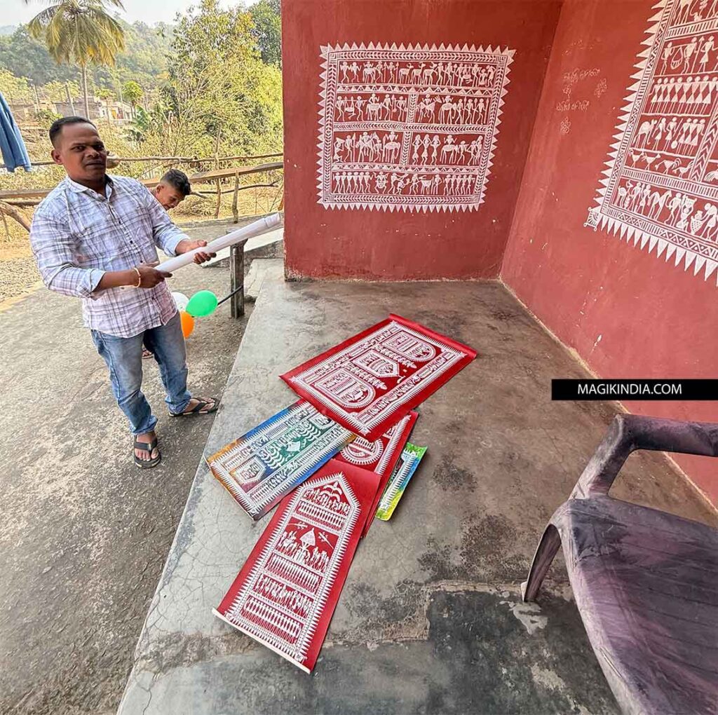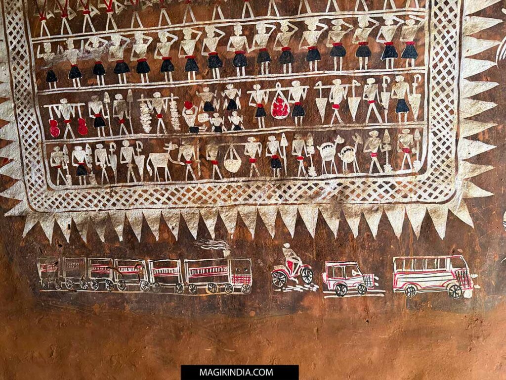 Bien que l’on puisse le confondre avec l’art Warli du Maharashtra, l’Idital s’en distingue par sa profondeur métaphysique. Là où le Warli célèbre la vie sociale, l’art Saura est tourné vers le chamanisme et le culte des morts.